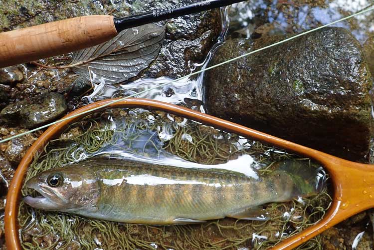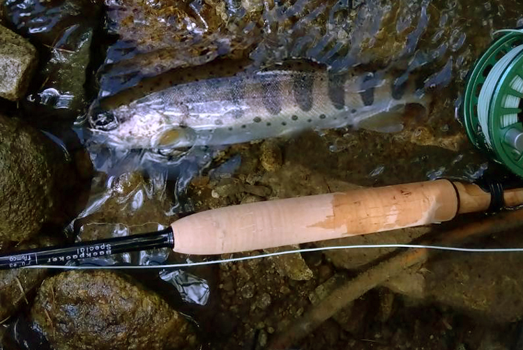 これくらいのイワナで、たぶん合わせて10匹くらい釣りました。もっと小さいのも何匹か釣ったよ。