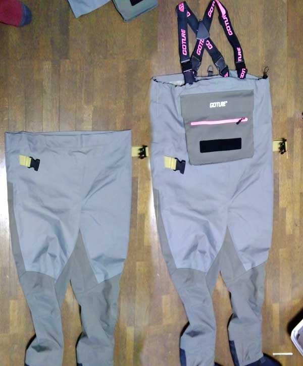 朝の入渓地点まで来たので、この先は、ハズカシフライでやってみよう。3時間は経っているから別にいいでしょう。 で、結果から言うと、まったく反応無かった。まぁ、想定内です。 まっ、今日はこんなとこです。 前回、中華のウェーダーを買ったという話をしたと思いますが、その中で、あたしゃ、チェストハイは嫌いだ。ウエストハイがいい。と、ほざいてたと思うが、それで中華のチェストハイを、ぶった切って、ウエストハイにしました。