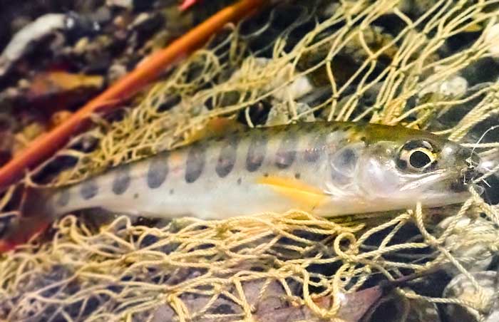 お昼になって、午前の部は終了。 車まで戻って、昼飯。今回は日清のシーフードヌードルの辛いヤツ。意外においしい。それと自宅で握ってきたおにぎり。そのあとコーヒーと冷蔵庫にあった小さい羊羹。まぁ、うまかった。 さて、昼からは、歩いて下って、適当なところから入渓。午前中のドライはやめて、ニンフにする。 で、12pくらいのを3匹と10pのを1匹釣った。あとインジケーターに3回ほど出た。 この川、15p以上は、いないんでないの?って思う。昔は、20p以上のも釣れたけどな。